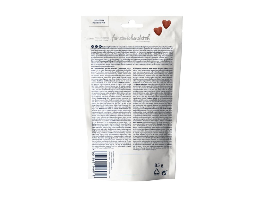 Drůbeží protein* (28%), kukuřičná mouka, kukuřice, škvarky, drůbeží tuk, hovězí tuk, brambory*, hydrolyzovaný protein, dužina z řepné melasy* (odcukrovaná), jablečné výlisky*, chlorid draselný, sušená celá vejce, droždí* , chlorid sodný, mořské řasy*, lněné semínko, prášek z čekanky, ostropestřec mariánský, kvasnice* (extrahované), artyčok, pampeliška, zázvor, bříza, kopřiva, heřmánek, koriandr, rozmarýn, šalvěj, kořen lékořice, tymián (celkem 0,18 % sušené byliny) *) sušené