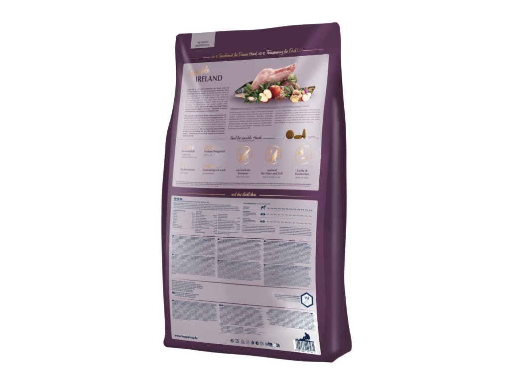 celozrnná ovesná mouka, lososová moučka (13 %), ječmen, kukuřičná mouka, králičí protein* (8 %), brambory*, živočišný tuk (kromě jiného drůbeží maso), cukrovkové řízky* (odcukřené), játrový hydrolyzát, hemoglobin*, jablečná dřeň* (1,1 %), chlorid draselný, sušená vejce, droždí*, chlorid sodný, mořské řasy*, lněné semeno (0,15 %), maso mořských mušlí* (0,05 %), droždí* (extrahované), juka shidigera*, ostropestřec mariánský, artyčok, pampeliška, zázvor (0,014 %), list břízy, kopřiva, heřmánek, koriandr, rozmarýn, šalvěj, kořen lékořice, tymián, (sušené byliny celkem: 0,17 %); *) sušené.