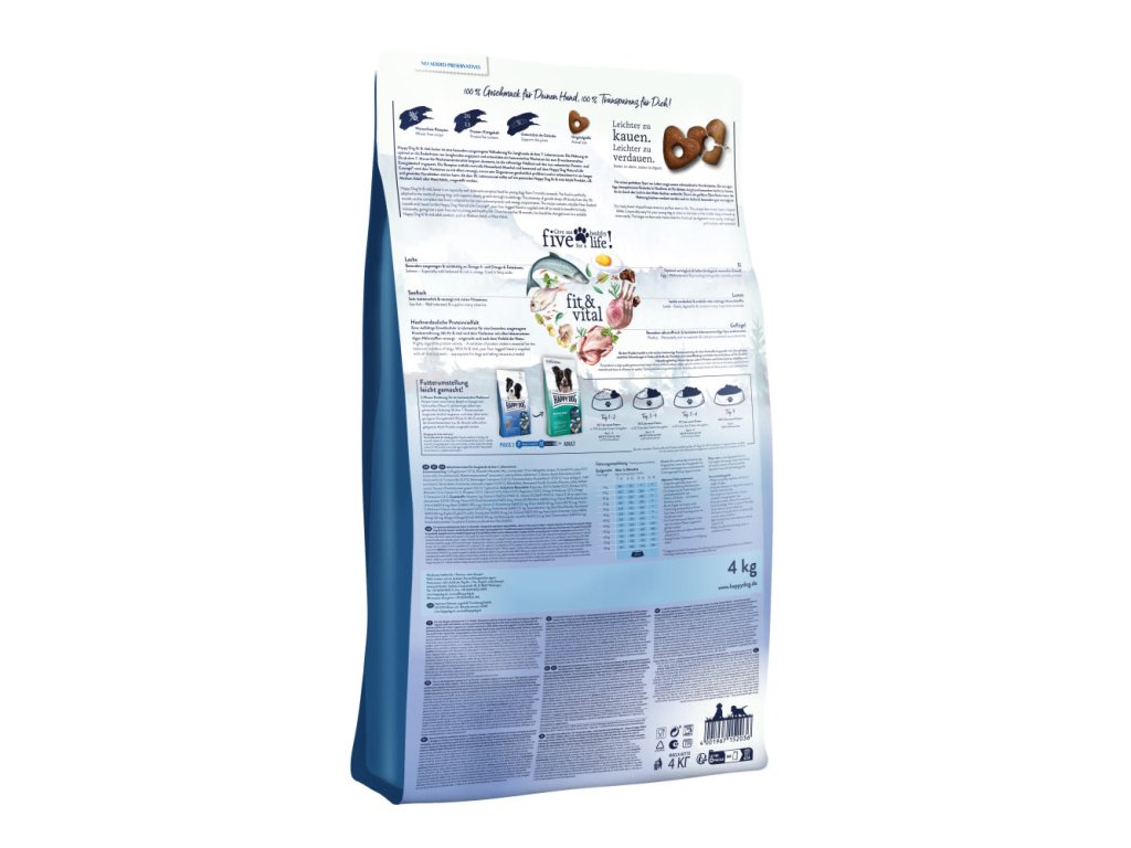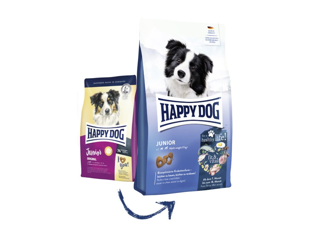 Krmivo Happy Dog fit & vital Puppy s recepturou bez pšenice je optimálně přizpůsobeno potřebám mladých psů od 7. měsíce a podporuje jejich harmonický růst až do dospělosti. Od 18. měsíce života byste měli přejít na vhodné Adult krmivo Happy Dog fit & vital, např. Medium Adult.