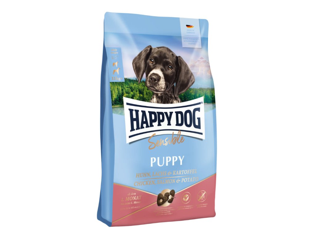 Krmivo Happy Dog Sensible Puppy s výživným lososem a dobře snášenlivými brambory je ideálně přizpůsobeno potřebám štěňat od 1. měsíce a podporuje jejich optimální vývoj. Recepturu bez lepku velmi dobře snášejí i citlivá štěňata. Od 7. měsíce života byste měli přejít na krmivo Happy Dog Sensible Junior mit Lachs & Kartoffel.