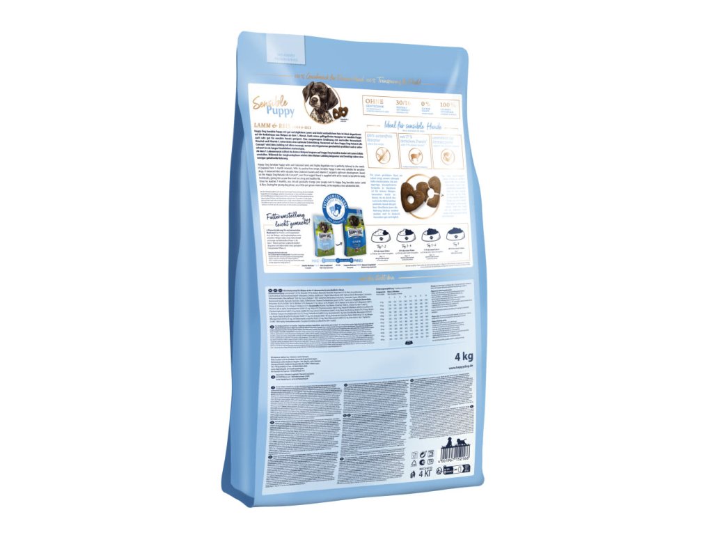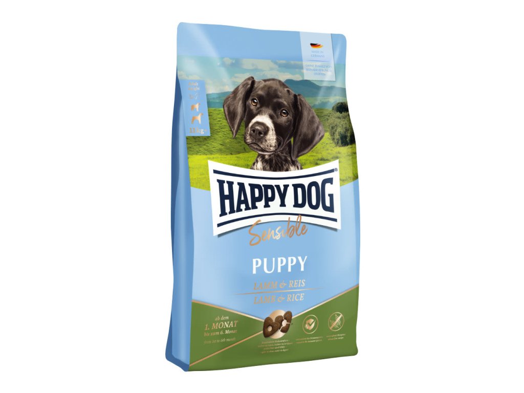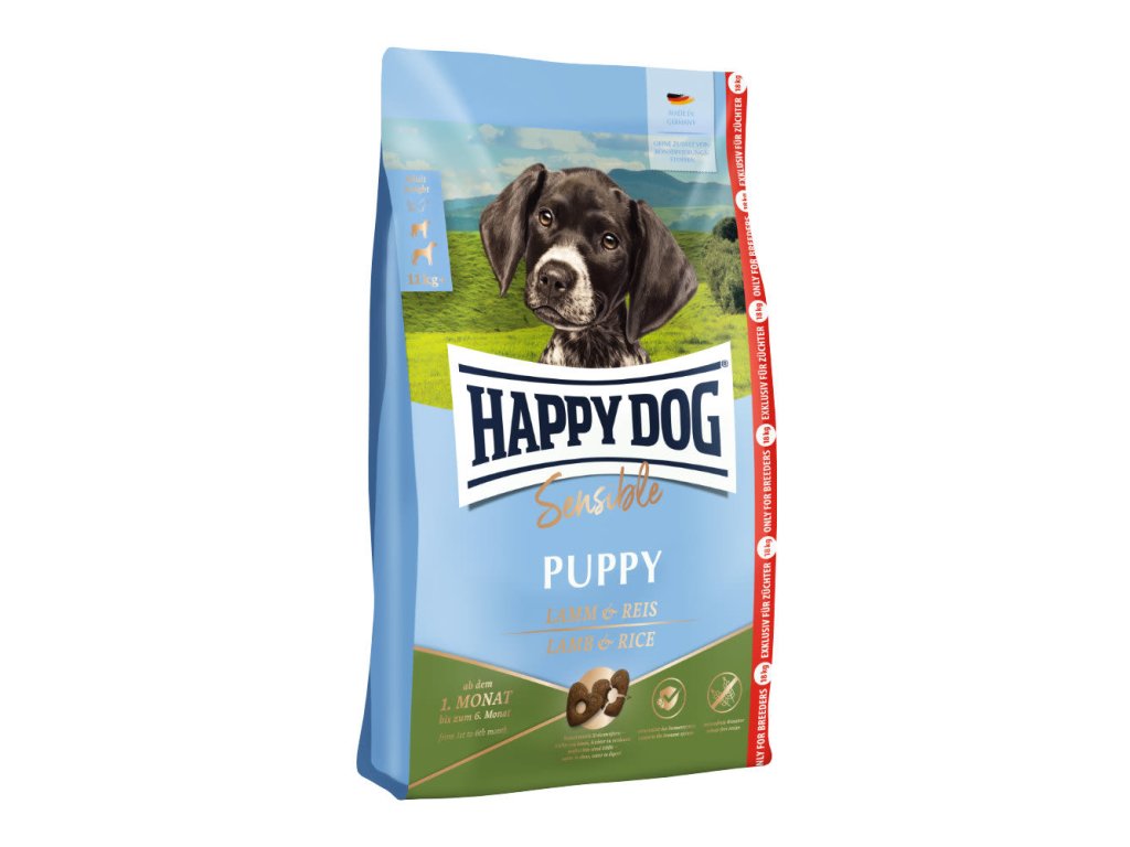 Krmivo Happy Dog Sensible Puppy s dobře snášenlivým jehněčím masem a snadno stravitelnou rýží je ideálně přizpůsobeno potřebám štěňat od 1. měsíce a podporuje jejich optimální vývoj. Recepturu bez drůbežího masa a lepku velmi dobře snášejí i citlivá štěňata. Od 7. měsíce života byste měli přejít na krmivo Happy Dog Sensible Junior mit Lamm & Reis.