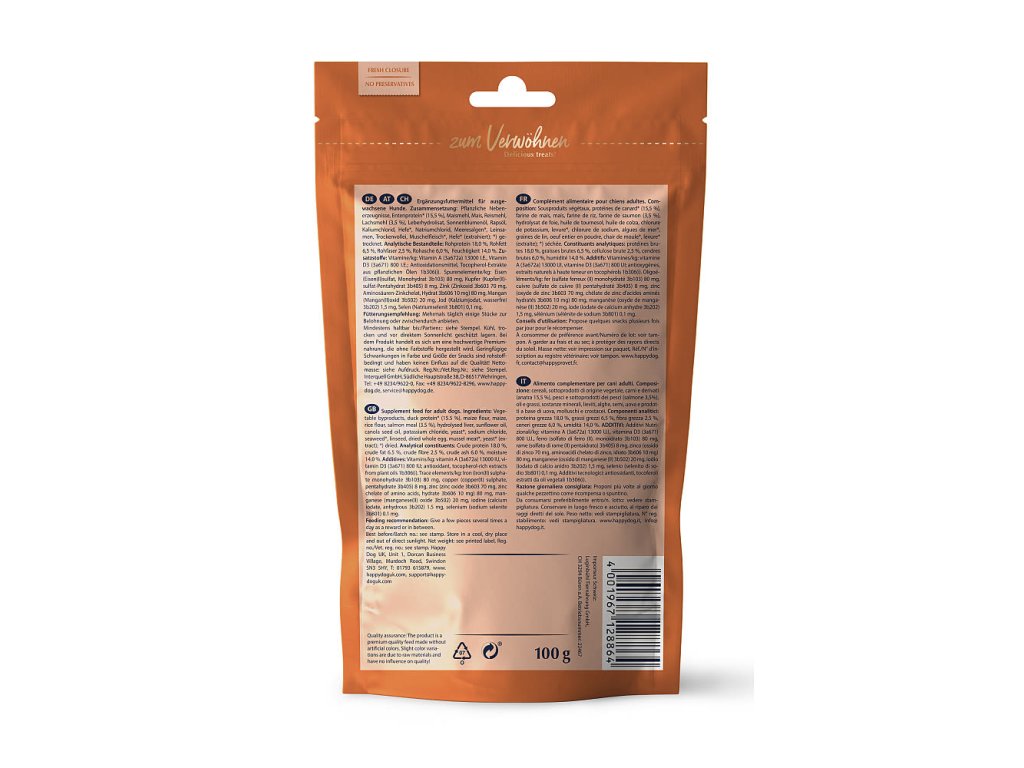 Nepatrné přirozené kolísání barvy a velikosti pamlsků je podmíněné surovinou a nemá žádný vliv na kvalitu!