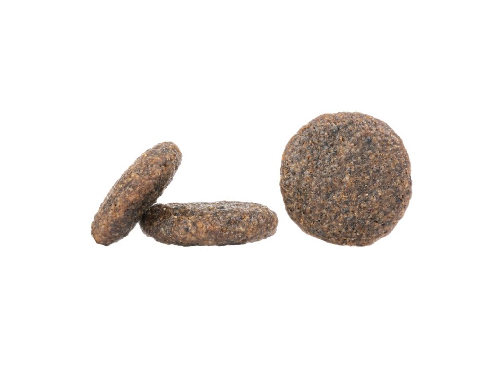 hrubý protein 23,0%; hrubý tuk 12,0%; hrubá vláknina 3,0%; hrubý popel 7,0%; vápník 1,4%; fosfor 1,0%; sodík 0,35%; Omega-6 mastné kyseliny 2,8%; Omega-3 mastné kyseliny 0,35%
