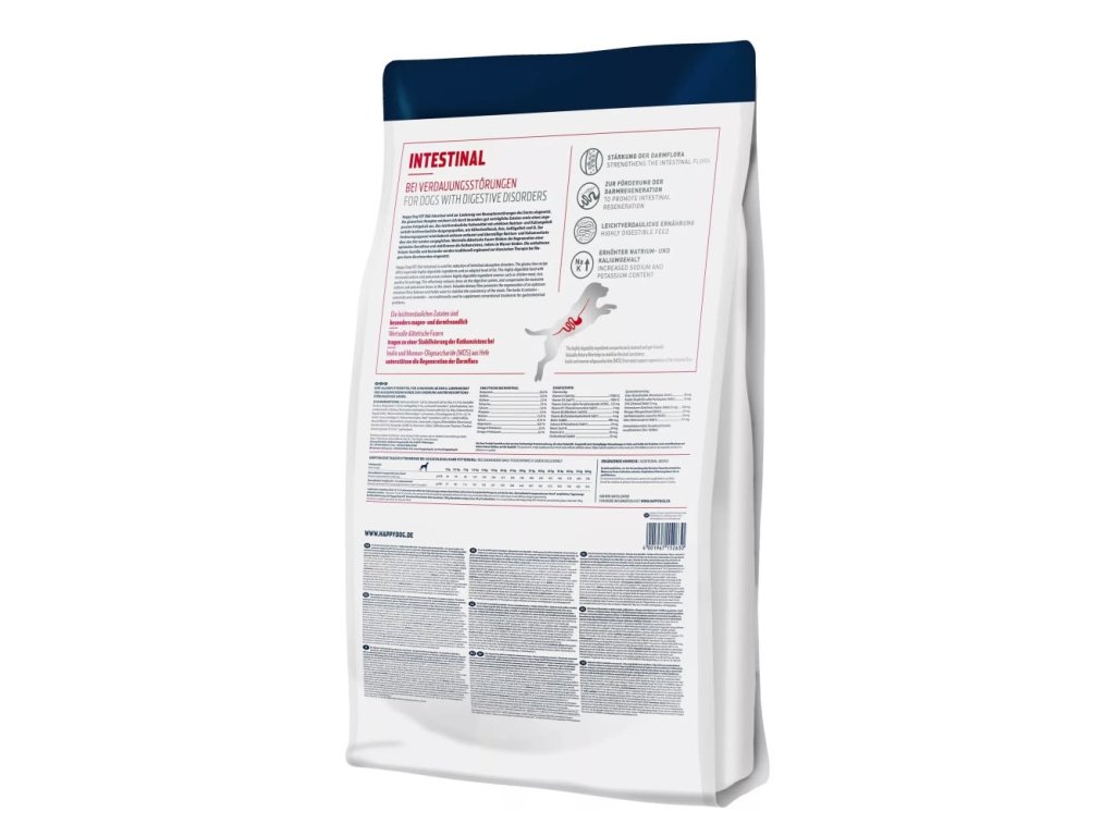 Krmivo Happy Dog VET Diet Intestinal se nasazuje ke zmírnění akutních střevních resorpčních poruch. Toto vysoce stravitelné krmivo se zvýšeným obsahem sodíku a draslíku se vyznačuje lehce stravitelnými zdroji komponentů, jako je kuřecí maso, rýže, drůbeží tuk a vejce.