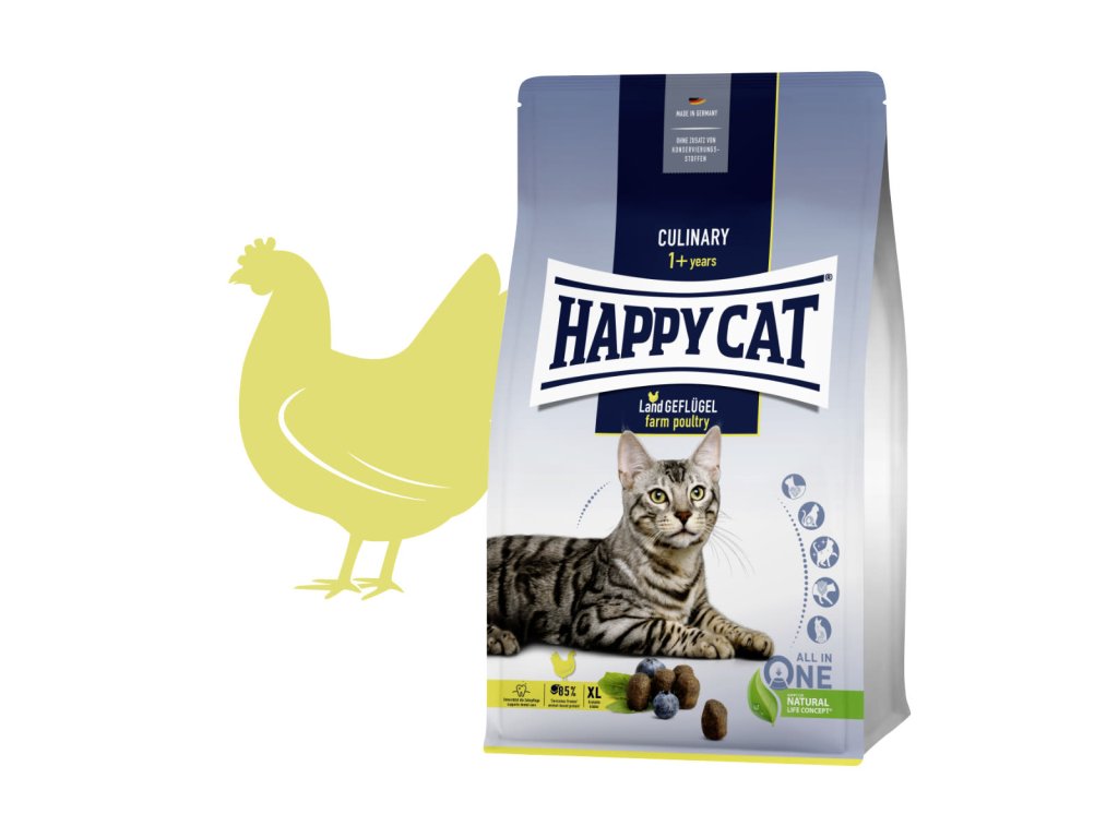 Happy Cat Land-Geflügel (předtím Large Breed) s extra velkými granulemi podporuje péči o chrup a je vhodné také pro vybíravé kočky.
