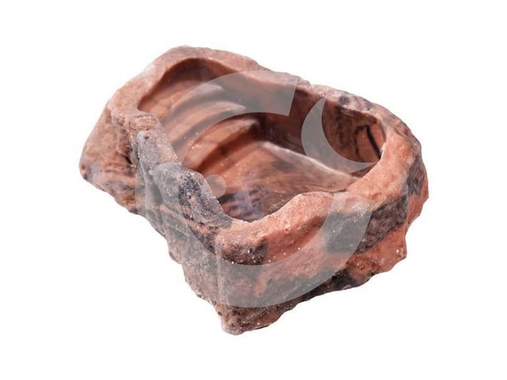 Misky na pitnou vodu a na koupání. Imitace skal. Stupínky chrání zvířata před utonutím.
