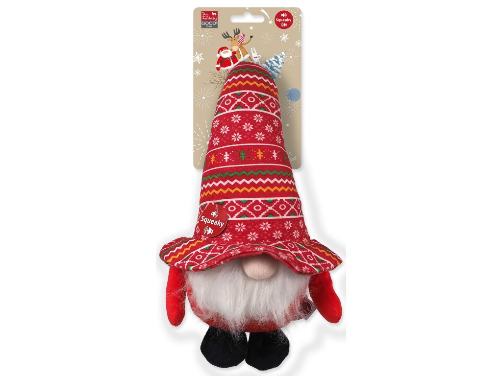Hračka Dog Fantasy Winter Tale trpaslík pískací červený 30cm