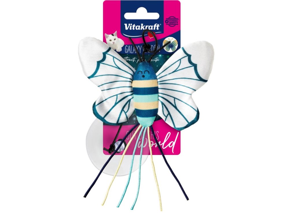 Náš poletující motýlek přináší galaktickou dávku zábavy a rozmanitosti. Jeho šustící křidélka lákají ke hře a lovení, přičemž hrací náladu ještě víc podpoří přidaná šanta kočičí. Motýlek je připevněn na tenkém provázku a můžeš ho snadno tahat vzduchem – a probudit tak v kočce její vnitřní šelmu. Díky přísavce ho ale můžeš také připevnit na hladký povrch a nechat svou kočku, aby si hrála sama.