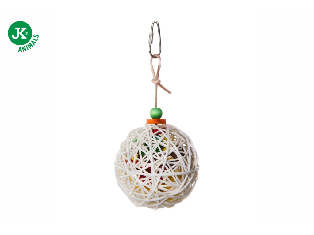 Ratanová hračka s lufa houbami a dřevem určená k zavěšení do klece pomocí kovové karabiny. Hračka je určena zejména pro střední papoušky. Někteří papoušci se mohou nové hračky bát. V takovém případě doporučujeme seznamovat papouška s novou hračkou pomalu a zpočátku ji nechat zavěšenou například zvenku na kleci, aby si na ni mohl papoušek pomalu zvyknout.