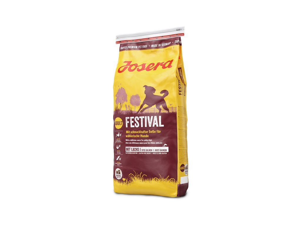 Obzvlášť aromatické a chutné: křupavé granule od Josera Festival s práškovou omáčkou nabízejí Vašemu náročnému pejskovi jedinečný chuťový zážitek jak v suché, tak i mokré formě. Vyvážená receptura s lososem je bohatá na energii pro aktivní a sportovně založené psy. Různé a snadno absorbovatelné výživové látky se postarají o pohodu a aktivitu. Josera Festival se vyznačuje vyváženým obsahem vápníku, fosforu, vitamínu C, manganu a mědi. Tento komplex vitálních látek se postará o silnou stavbu kostí a zdravé klouby. Cenné mastné kyseliny, zinek a měď se zlepšují zdraví kůže a lesklost srsti. Neobsahuje žádná umělá barviva, aromata, konzervační látky, ani geneticky upravované suroviny. Neobsahuje přísady, které mohou způsobovat alergie, jako jsou pšenice, cukr, sója nebo mléčné produkty. Kvalita všech přísad je neustále kontrolována. Kvůli zachování cenných vlastností, jsou granule baleny do praktického, znovuuzavíratelného sáčku AromaSafe.