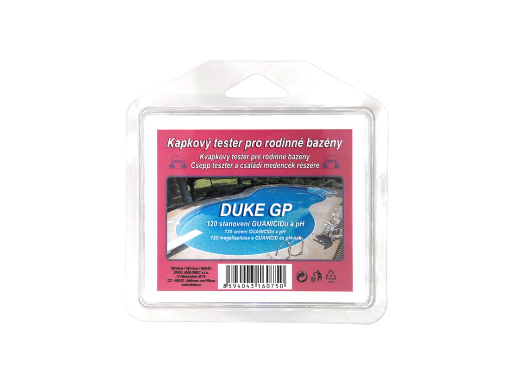 Kapkový tester Guanicid pro rodinné bazény k určení až 120 hodnot.