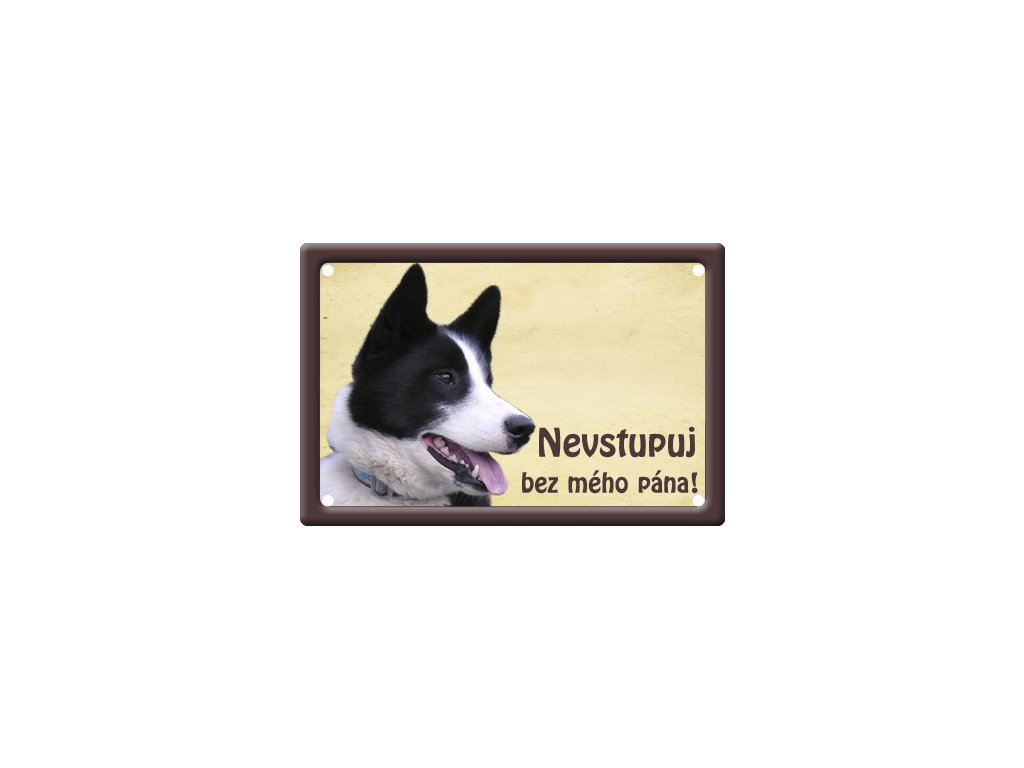 Plechová psí cedulka pro venkovní i vnitřní použití v rozměru 150x100mm, v rozích 4 díry pro uchycení, prolisovaný zdobný okraj tabulky, potištěný plech.