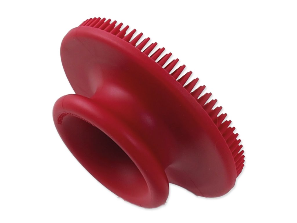 Návod k použití: maximálního vyčesávacího efektu docílíte dlouhými obloukovými tahy gumového kartáče po povrchu srsti zvířete. Tento gumový kartáč je také skvělým pomocníkem během koupání psa – usnadňuje šamponování a čištění srsti.