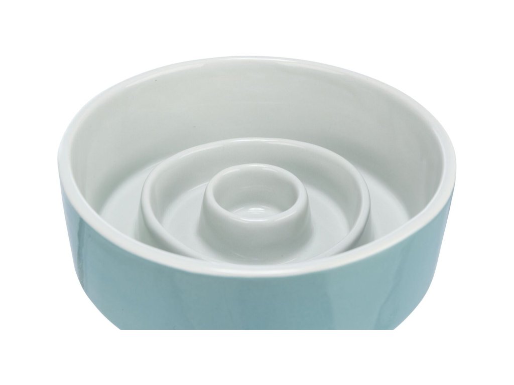 Keramická miska k pomalému krmení, kruhy, šedomodrá