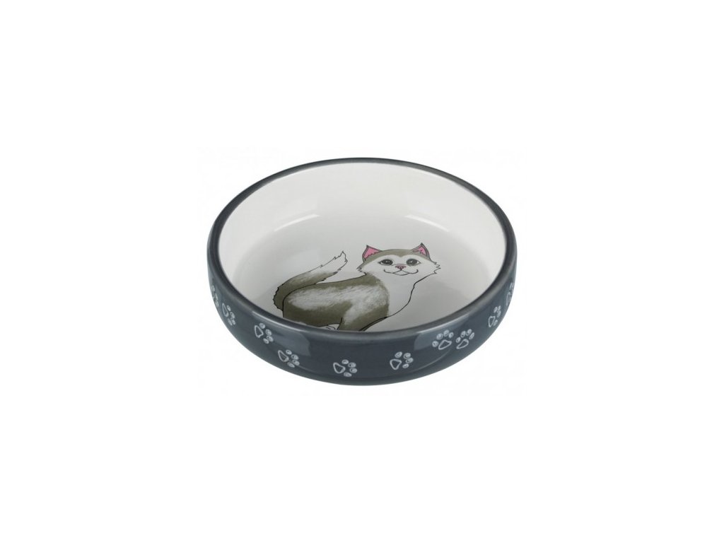 Keramická miska pro kočky s krátkým nosem 0,3l/15cm šedo/bílá
