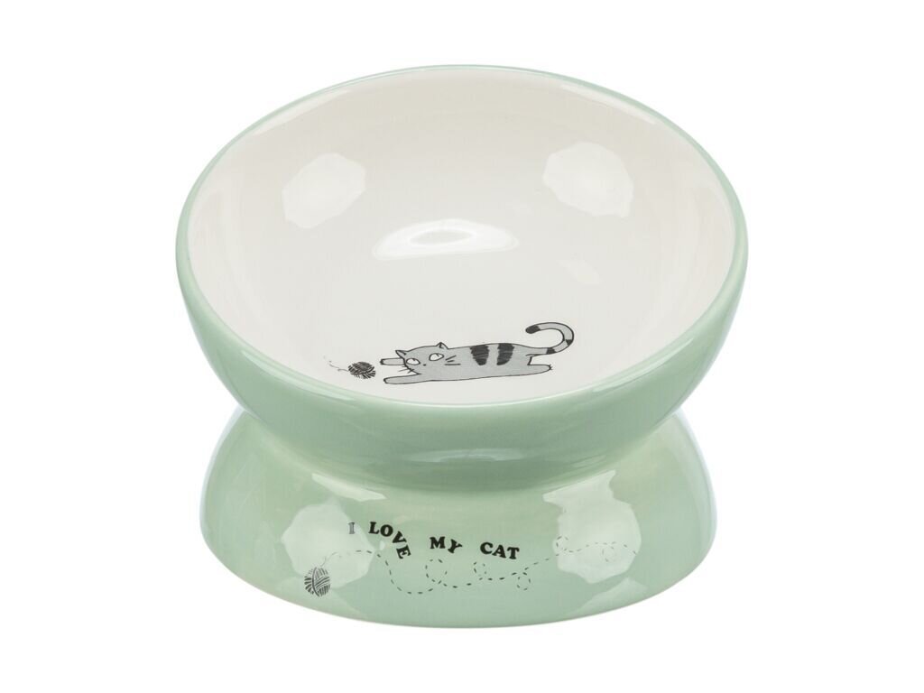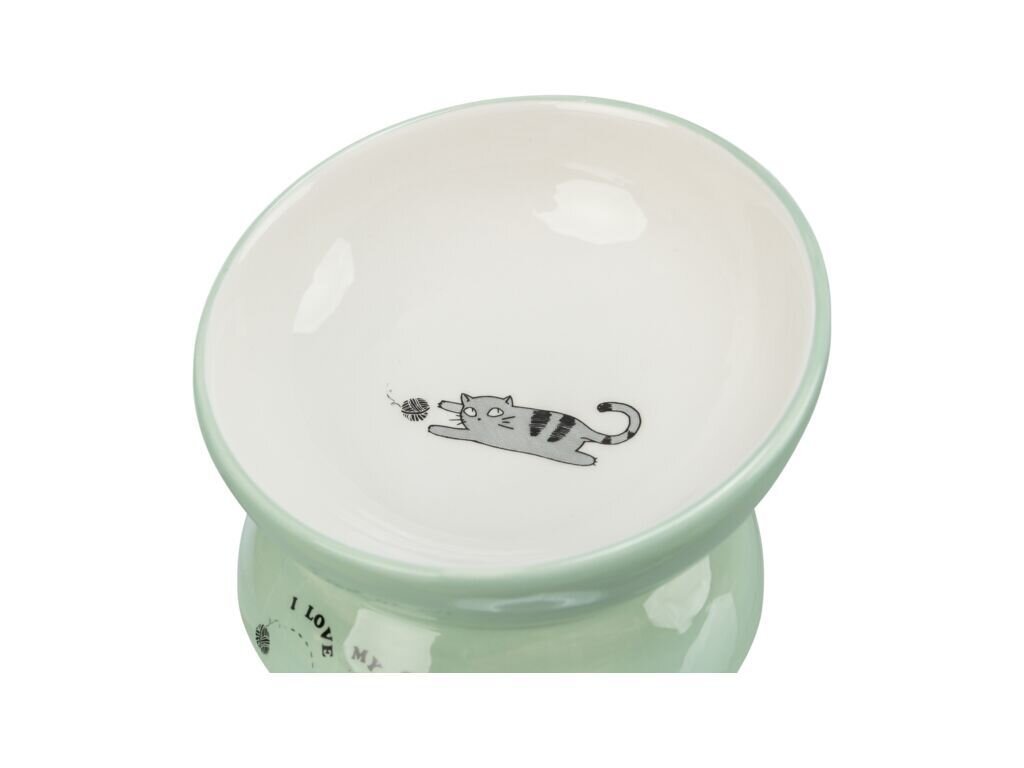 Keramická miska vyvýšená s motivem kočky, ergonomický tvar, 0,15 l / 13 cm, šalvěj/bílá