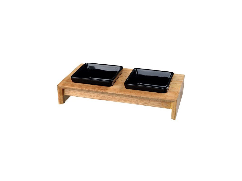 atraktivní keramické misky černé barvy v dřevěném stojánku se snadno udržují v čistotě a zároveň jsou i zajímavým doplňkem do moderního bytu
