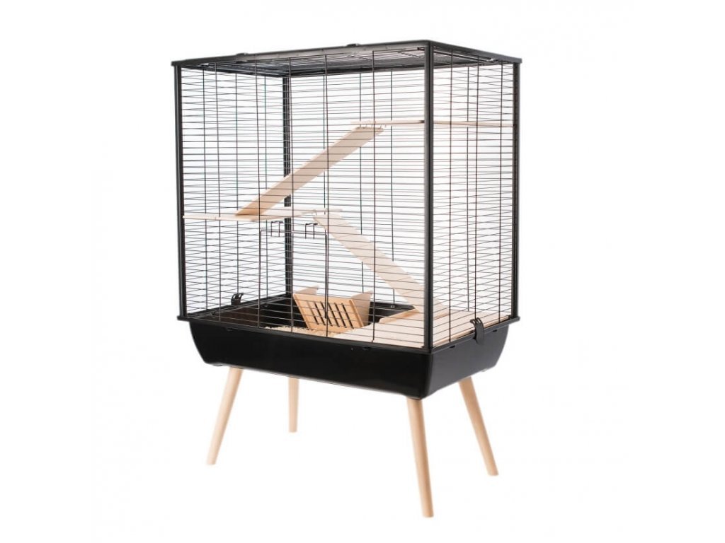 Designová klec NEO Cosy umožňuje zvířeti díky své velikosti ve 3 úrovních skutečnou svobodu pohybu. Klec je vybavena velkým vrchním otvorem pro snadný přístup a čištění a dále menšími dvířky v čelní části pro bezpečné vyjímání zvířete.