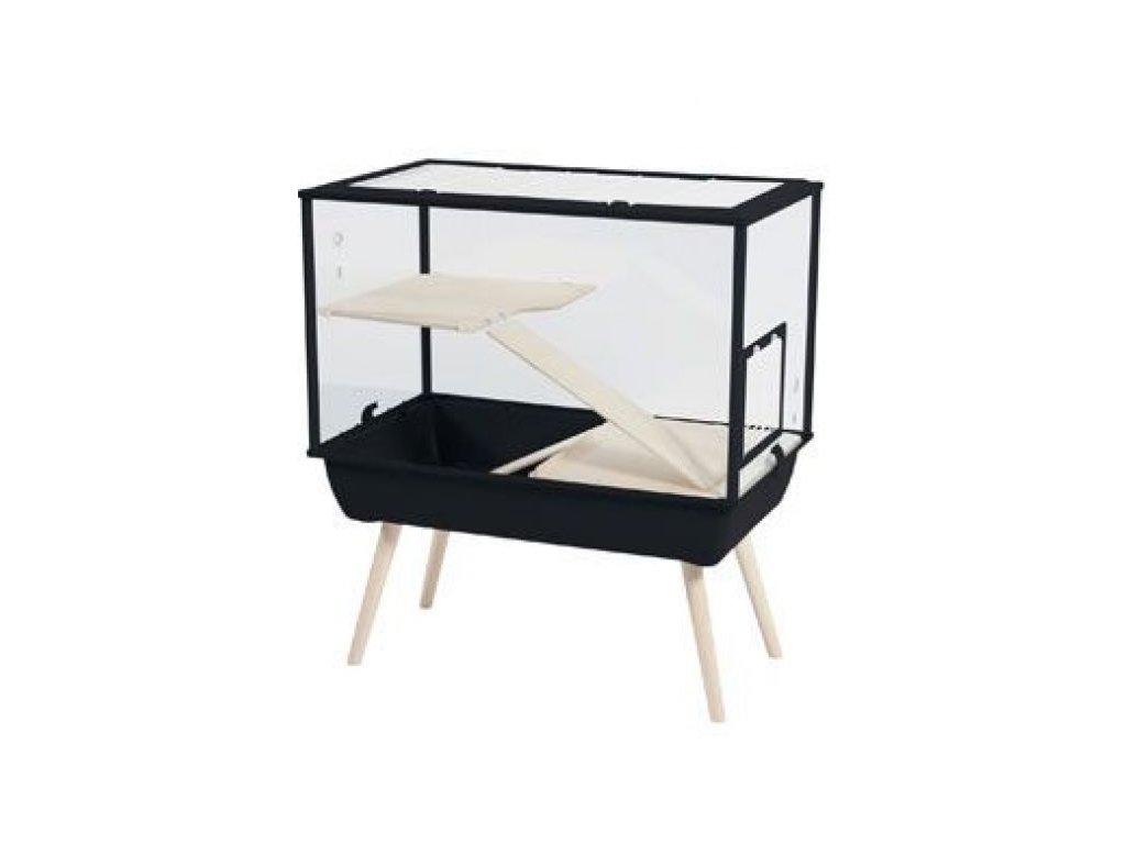Vybavení klece: 1 domeček, 1 platforma, 2 žebříky, 4 nohy k vyvýšení klece (vyvýšená klec poskytuje zvířeti větší rozhled po okolí).