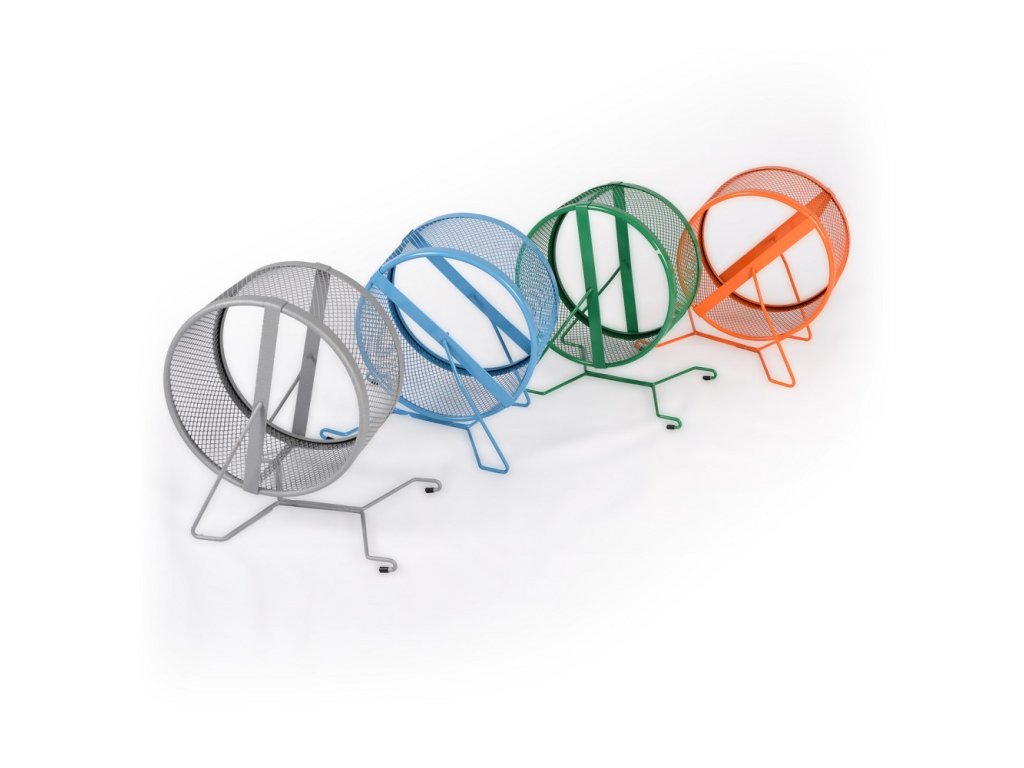 Chromovaný, síťovaný kolotoč robustní konstrukce pro všechny hlodavce, kteří rádi běhají.
