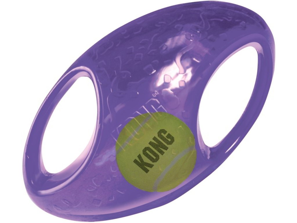 Hračka Kong Jumbler je skvělou interaktivní hračkou na házení, aportování a tahání se psem. Extrémně silný a protiskluzový povrch KONG Jumbler Balls je vyrobený z TPR (Thermo-Plastic-Rubber), udržuje hračku stabilní při žvýkacích útocích a příjemnou pro dásně a zuby. Proto je ideální pro házecí a aportovací hry. Obě držadla Vám pomohou Jumbler zvednout ze země, přetahovat se o něj, nebo jím třást i když je mokrý.
