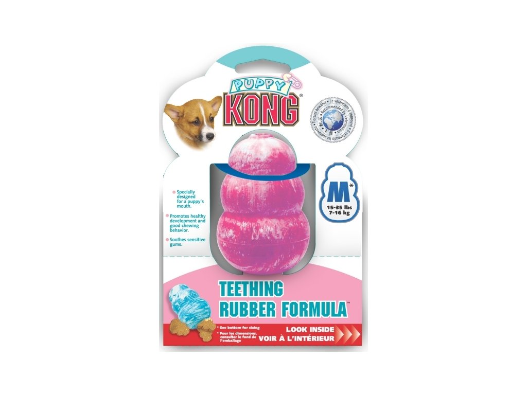 Velikost odpovídá potřebám štěňat. Hračka přispívá k zdravému vývoji zubů a žvýkacího svalstva. Z měkčí gumy než červený Kong, mimořádně vhodný pro štěňata a rasy psů s né tak silným stiskem.