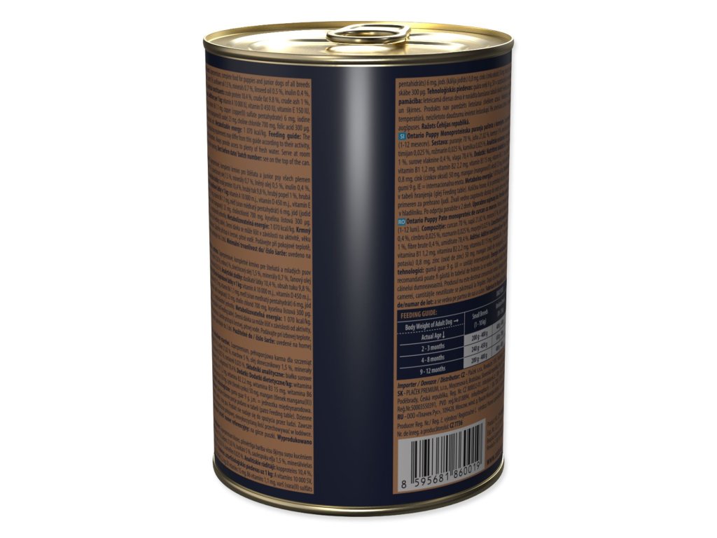 Konzerva Ontario Puppy monoprotein krůtí pate s mrkví 400g