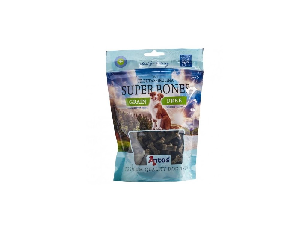 Složení: Rostlinné produkty (27% bramborový škrob, 6% tapiokový škrob), ryby a rybí produkty (46% pstruhová moučka), řasy (0,5% spirulina)