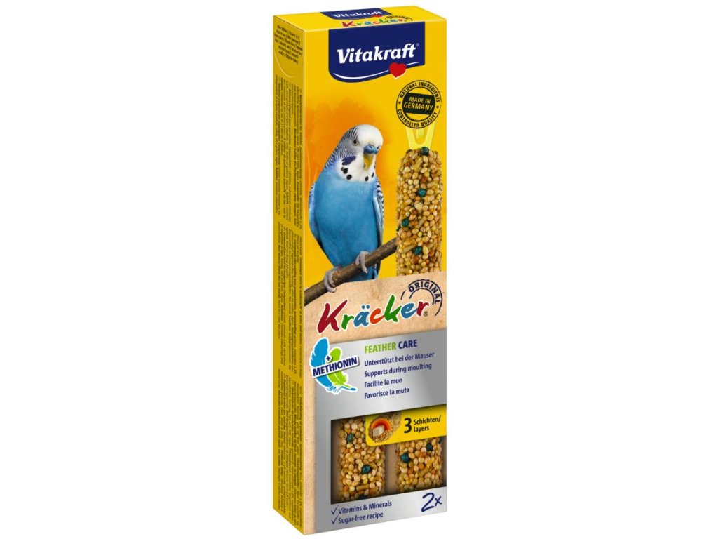 Speciální tyčinky s důležitými vitamíny, minerály a esenciálními aminokyselinami napomáhají k optimálnímu přepeření andulek. Receptura bez cukru.