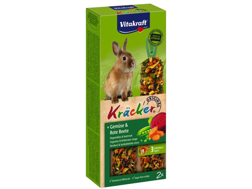 Doplňkové krmivo pro králíky. Cereální tyčinky, které jsou třikrát jemně pečené v troubě. Obsahují nejlepší obiloviny, semena a zeleninu. Kräckery jsou na přírodním dřívku s praktickým držákem. 2ks v balení.