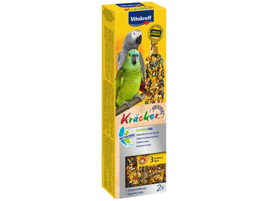 Speciální tyčinky se skvělou chutí a důležitými vitamíny, minerály a esenciálními aminokyselinami, které napomáhají k optimálnímu přepeření papoušků. Tato směs bez cukru však kromě toho, že pomáhá při výměně peří, navíc ptáky přirozeně zaměstná. Třikrát pečená směs zrní jim zajistí dlouhotrvající zábavu při uždibování. Dřívko schované uvnitř taky napomáhá nezbytnému obrušování zobáku.