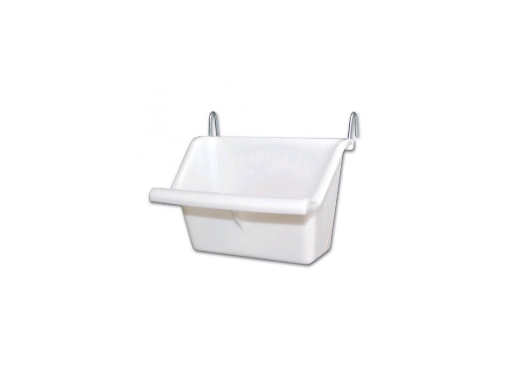 Plastové krmítko pro exoty na zrní, ovoce a další. K zavěšení do klece pomocí dvou kovových háčků.
