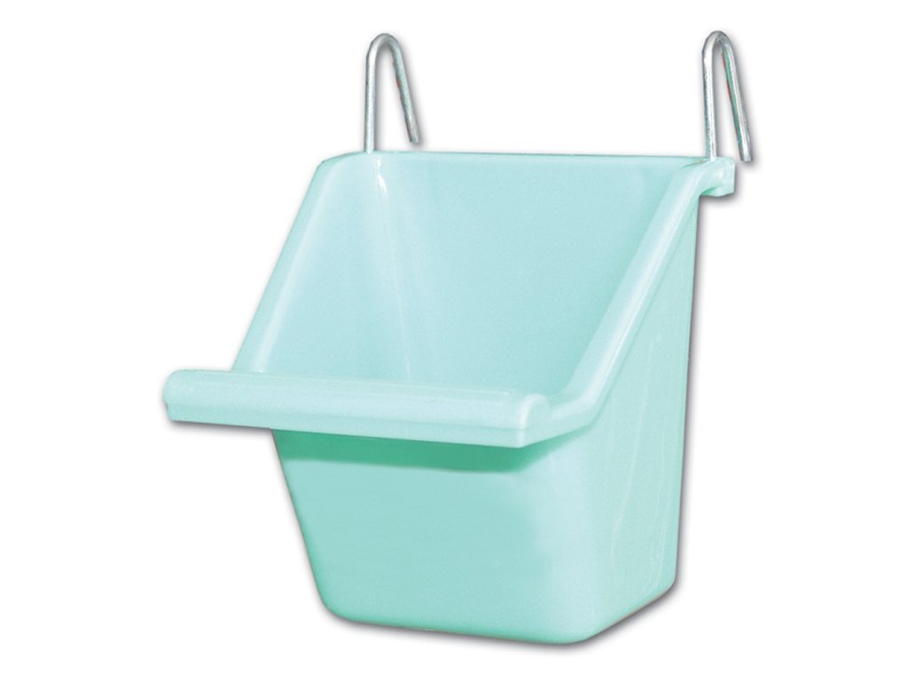 Plastové krmítko pro exoty na zrní, ovoce a další. K zavěšení do klece pomocí dvou kovových háčků.