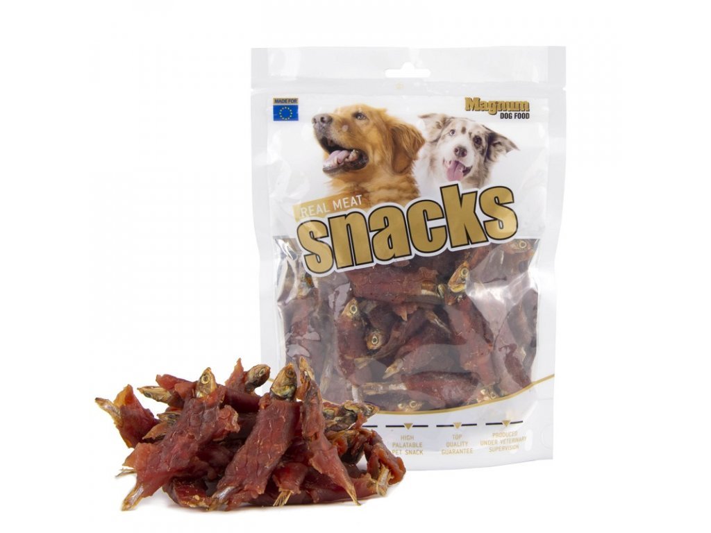 Složení: kachní maso, rybí maso, škrob, sorbitol, glycerin.