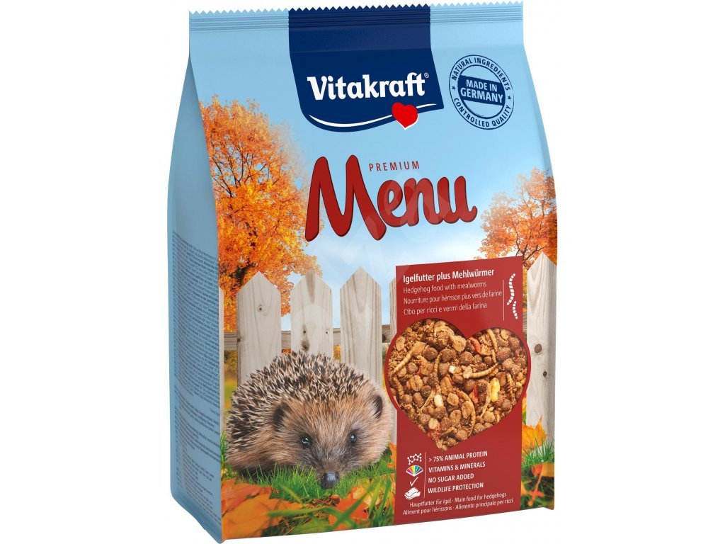 Prémiové menu je univerzální energetické krmivo s přírodními ingrediencemi, které je speciálně přizpůsobeno pro potřeby ježků a mj. obsahuje chutné moučné červy a výživné korýše.