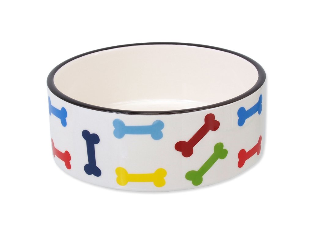 Miska DOG FANTASY keramická potisk barevné kosti bílá 15,5 cm 0.79l
