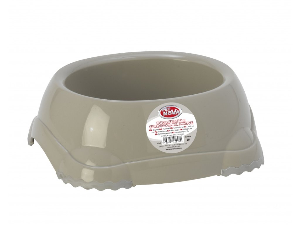 PET NOVA plastové psí misky jsou vyráběny v Evropě z plastu prémiové kvality. Řada inovativních misek PET NOVA má speciální protiskluzovou gumu ve všech čtyřech rozích dna misek, díky níž při jídle miska neklouže. Nálepka PET NOVA je snadno vyjímatelná.