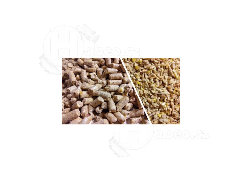 Složení a obsah: Pšenice, kukuřice, uhličitan vápenatý, sojový loupaný extrahovaný šrot toastovaný, sójové boby toastované, výrobky z průmyslové výroby cukrovinek, řepkový extrahovaný šrot, dihydrogenfosforečnan vápenatý, chlorid sodný