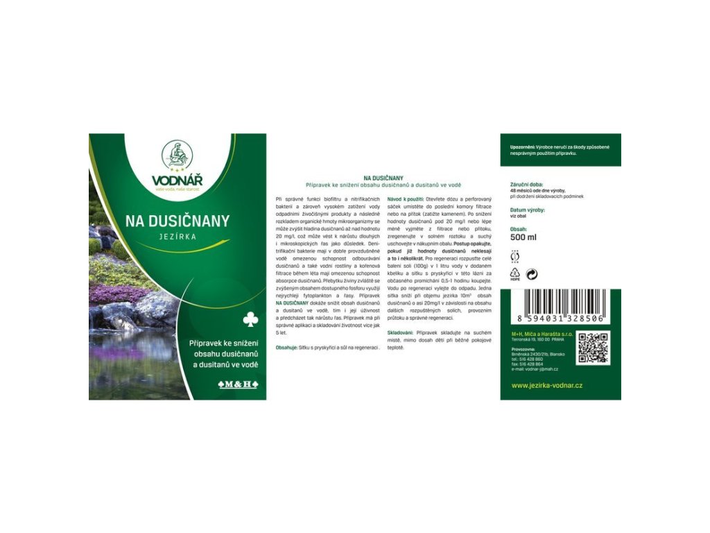 Přípravek Na Dusičnany dokáže snížit obsah dusičnanů a dusitanů ve vodě, tím i její úživnost a předcházet tak nárůstu řas. Přípravek při správném použití a skladování má životnost i více jak 5 let.