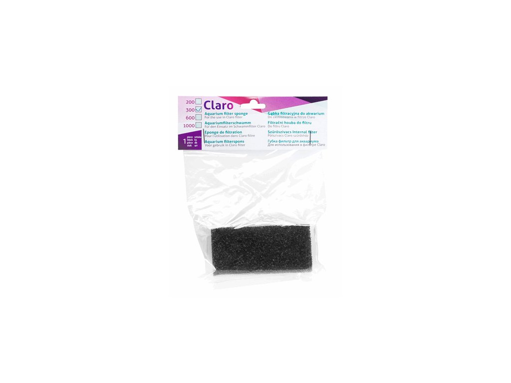 Filtrační houbu do akvária lze ji zakoupit ve variantě vhodné pro konkrétní modely filtrů Claro. Tyto vložky jsou přírodní a biologické, takže zajistí dokonalou čistotu a biologickou filtraci ve vašem akváriu.