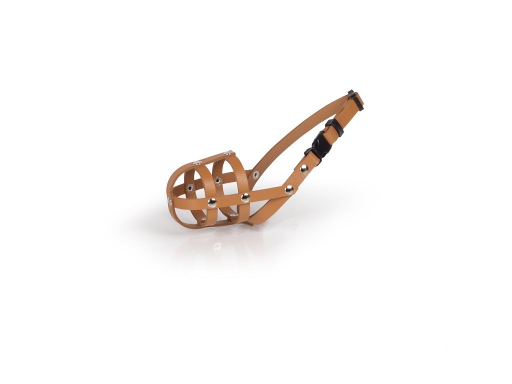 Kožené náhubky s kvalitní umělohmotnou sponou. Dobře padnoucí tvar.