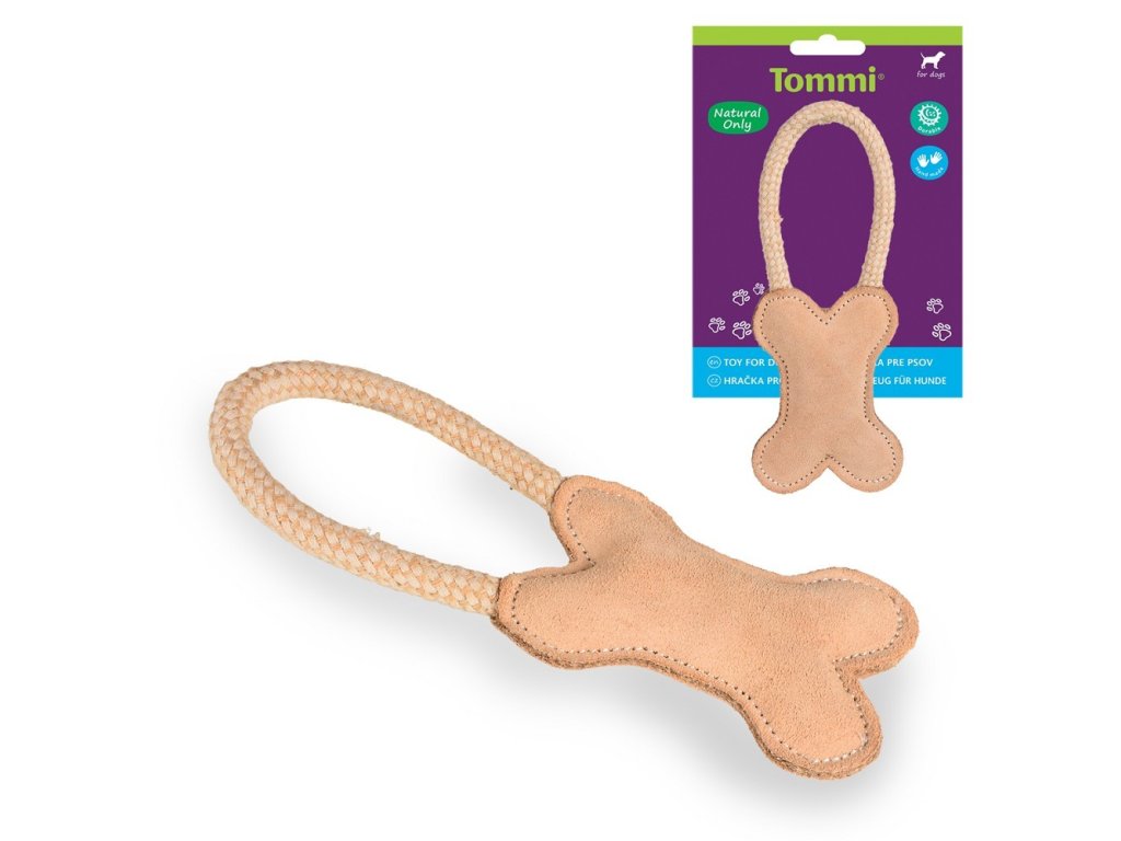 Velice odolná hračka pro psy z přírodní kůže. Plněna přírodními vlákny. Jutová bavlněná lana pro přetahování a aportování. Prošita silnou nití pro dlouhou životnost.