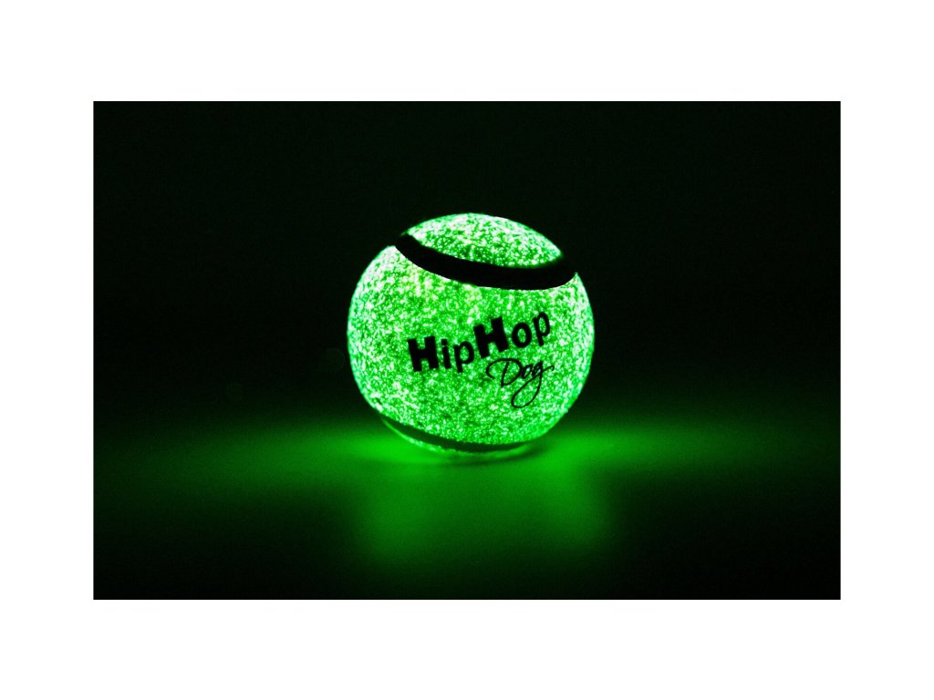 Tenisový míč značky HIPHOP DOG, ale není jen obyčejný míč, tato nevšední hračka pro psy v sobě skrývá několik vychytávek, které z něj dělají perfektního společníka pro noční hry.