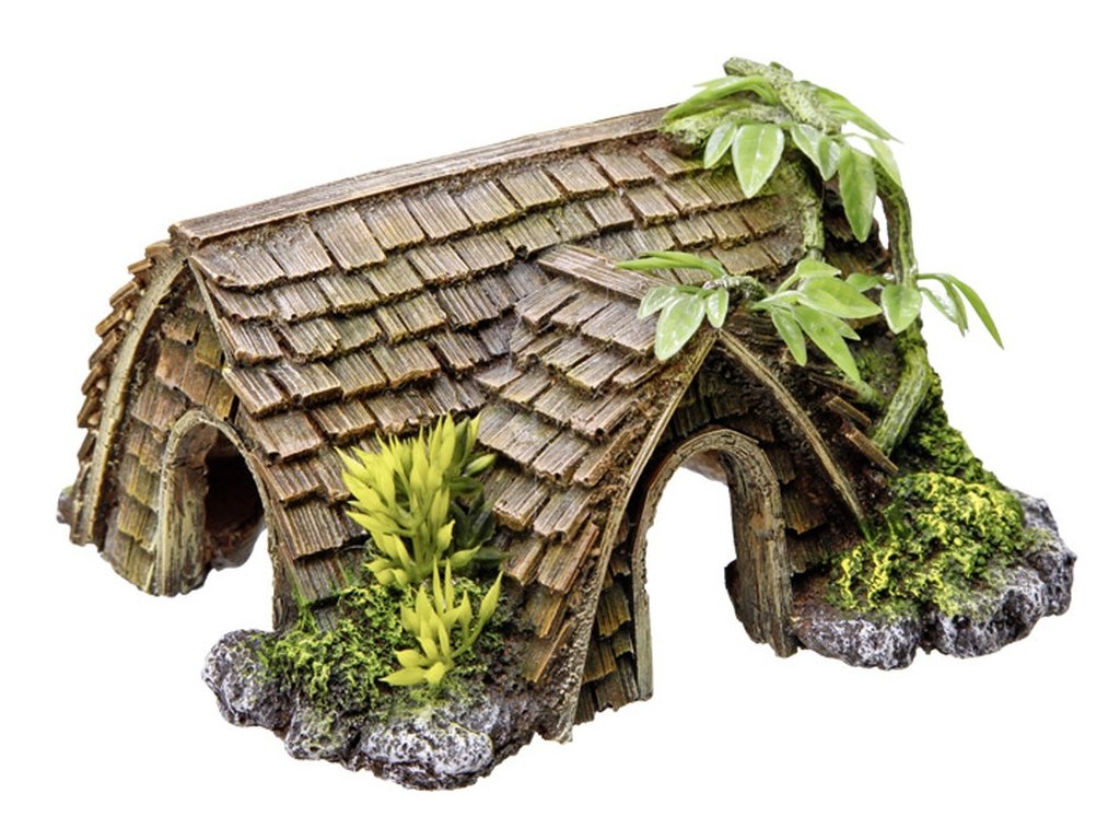 Dekorace do akvária - chýše. Vyrobeno z polyresinu (syntetické pryskyřice). Velmi detailní provedení. Naprosto netoxické, neutrální na biologické rovnováhy.