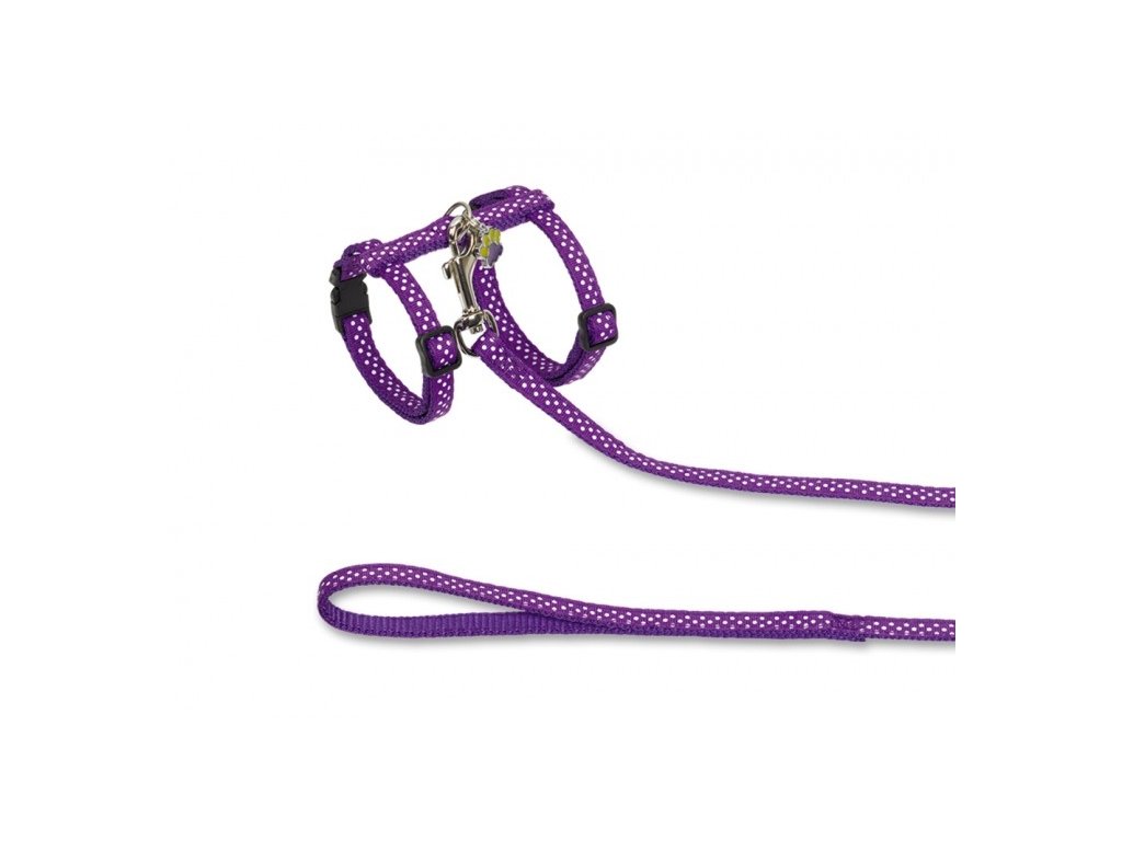 Dots fialový set postroje a vodítka s přívěskem
