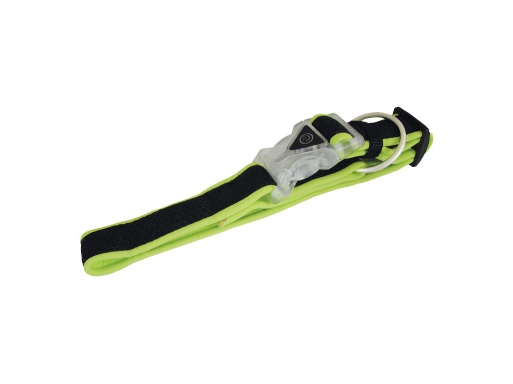 Nylonový obojek s neoprenovou podšívkou a svítící plastovou sponou. Možné nastavit 3 frekvence blikání, viditelnost až do vzdálenosti 300m.