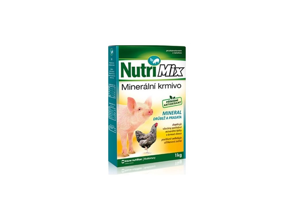 Nutrimix Mineral je určen na doplnění minerálních látek do krmných dávek pro prasata a drůbež chovaných v drobnochovech. Obsahuje všechny potřebné mikro a makroprvky v optimálním poměru. Přidává se do krmné dávky, která je založena na obilných šrotech nebo jiných neplnohodnotných krmivech, popř. kuchyňských zbytcích atd.