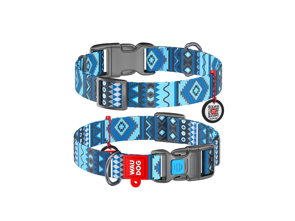 Obojek nylonový Waudog Ethno Blue QR