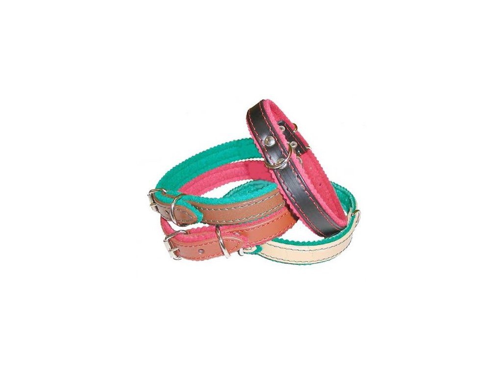 Obojky koženéVyrobené obojky prostřednictvím nejnovějších výrobních technologii s použitím moderních materiálu a širokým výběrem provedení se stanou módním doplňkem. V nabídce můžete najít obojky v různých provedení,délkách s použití plstě, pěnovky i bez.K dispozici je široká paleta variant: od malých plemen až po velká,jednoduché, tvarované, široké i stahovací. Na obojky jsou používány ozdoby které se upevňují na nýty tak aby obojky byly příjemné, hladké na dotek.Obojky se produkuji ve čtyřech barevných odstínech. Použity jsou barvy s vysokou stálostí i při extrémních podmínkách.