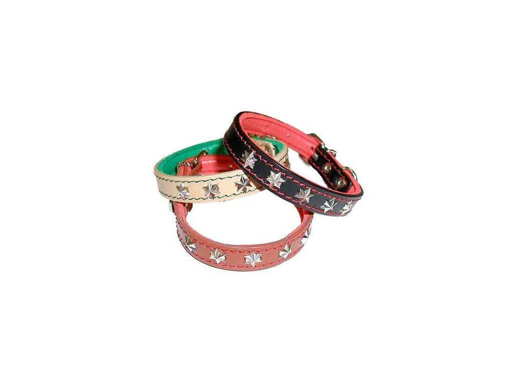 Obojky koženéVyrobené obojky prostřednictvím nejnovějších výrobních technologii s použitím moderních materiálu a širokým výběrem provedení se stanou módním doplňkem. V nabídce můžete najít obojky v různých provedení,délkách s použití plstě, pěnovky i bez.K dispozici je široká paleta variant: od malých plemen až po velká,jednoduché, tvarované, široké i stahovací. Na obojky jsou používány ozdoby které se upevňují na nýty tak aby obojky byly příjemné, hladké na dotek.Obojky se produkuji ve čtyřech barevných odstínech. Použity jsou barvy s vysokou stálostí i při extrémních podmínkách.